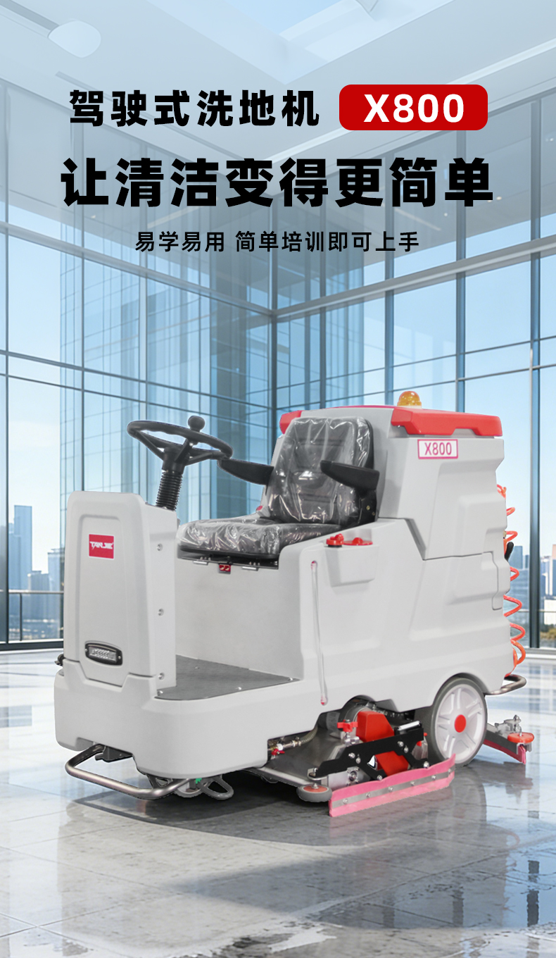 洗扫一体机X800产品介绍一、产品概述​产品简介:洗扫一体机X800整机设计美观大气,操作简单易上手,一台机器可代替10-15人,适用于物业、医院、工厂、仓库、机场、车库等大面积室内场景地面清洁作业。产品定位:适用于大型工厂、物流仓库、商场超市等大面积硬质地面清洁场景,满足企业对高效、深度清洁的需求。设计理念:秉持人性化设计理念,注重操作便捷性与安全性,